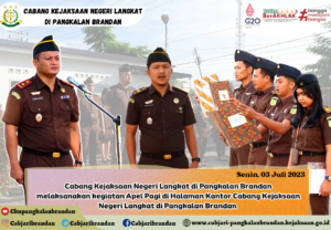 Pada hari Senin, 03 Juli 2023 pukul 08.00 Wib Cabang Kejaksaan Negeri Langkat di Pangkalan Brandan melaksanakan Apel Pagi yang dilaksanakan di Halaman Kantor Cabang Kejaksaan Negeri Langkat di Pangkalan Brandan;